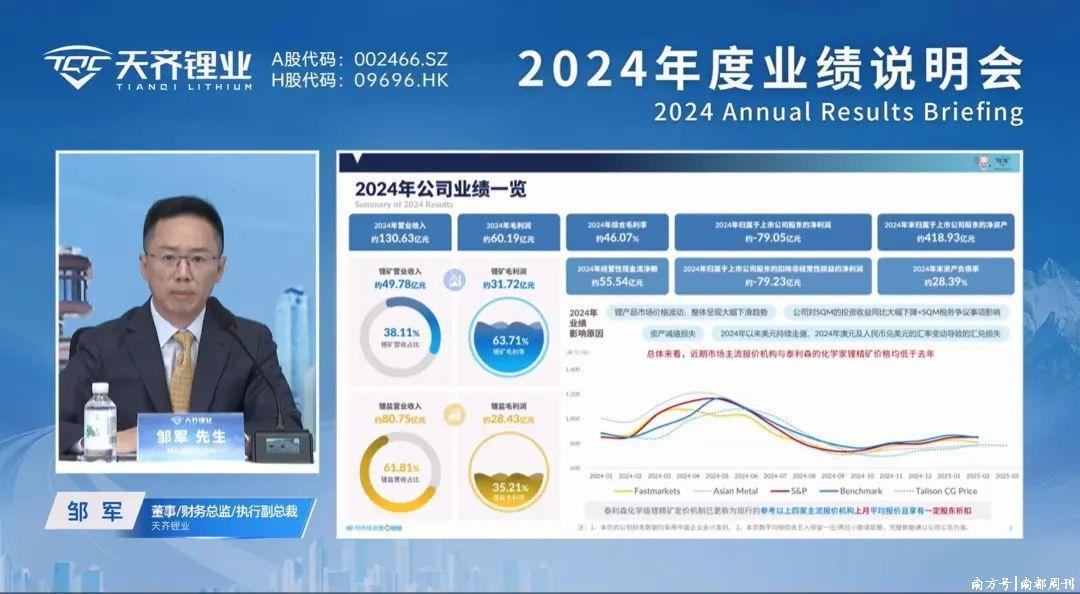 在业绩说明会上,天齐锂业财务总监邹军对2024年经营亏损的主要原因进行解释。